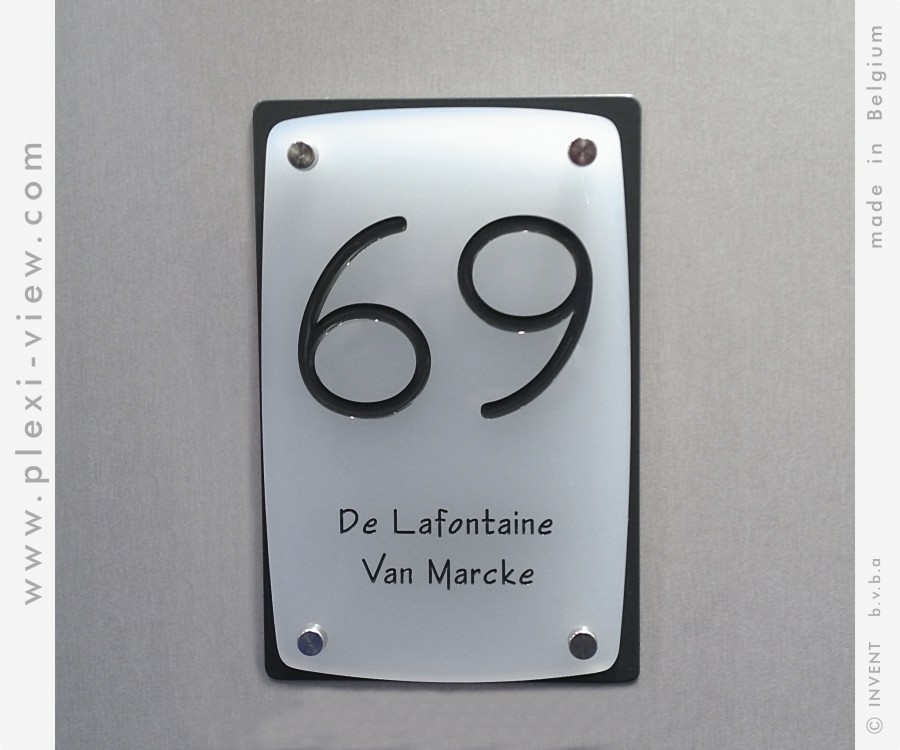 2) option without drilling PLEXI MAT : the plexi mat is adhesive prepared and can be stuck to any surface, wall or postbox. The housesign NOT removable. (also possible in combination with background plate). + € 35.00