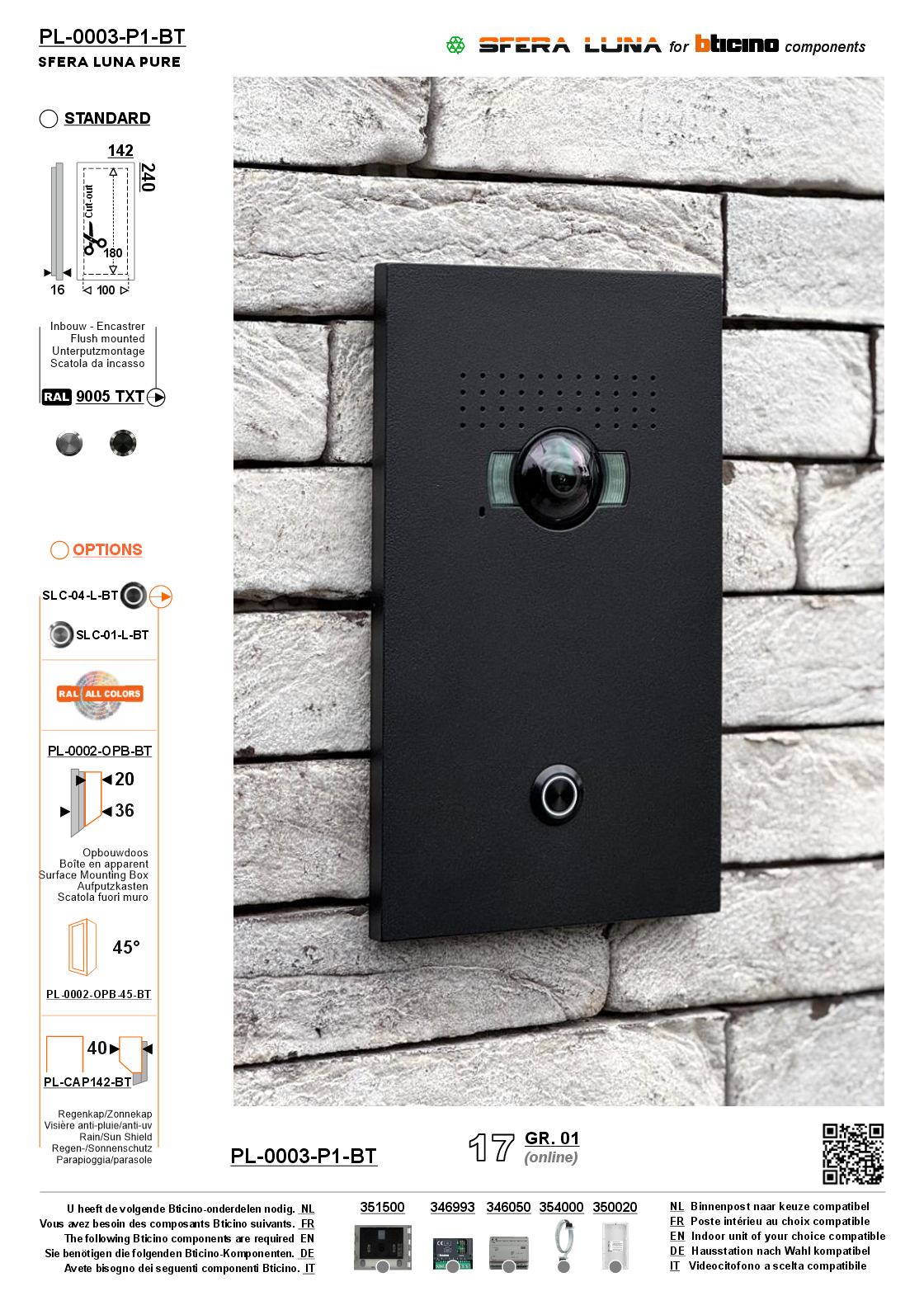 - Platine de rue vidéo-parlophonie SFERA LUNA PURE dans son LOOK LE PLUS EPURE 100% Pure.