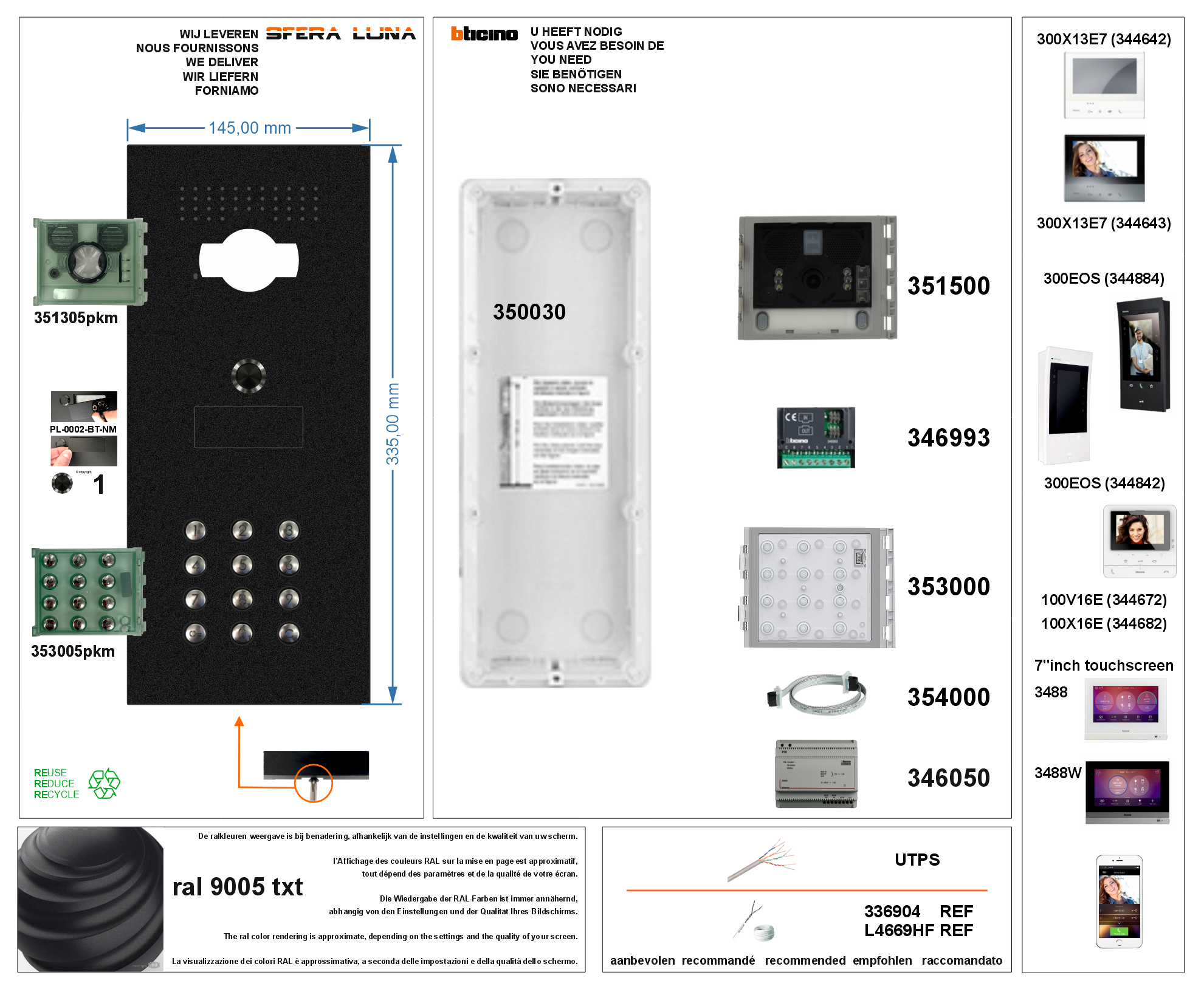 - Kompatibel mit alle Bticino Hausstationen: Classe 100X16E (344682) oder Classe 300EOS (344842) oder MyHOME_UP 7" Hometouch 3488