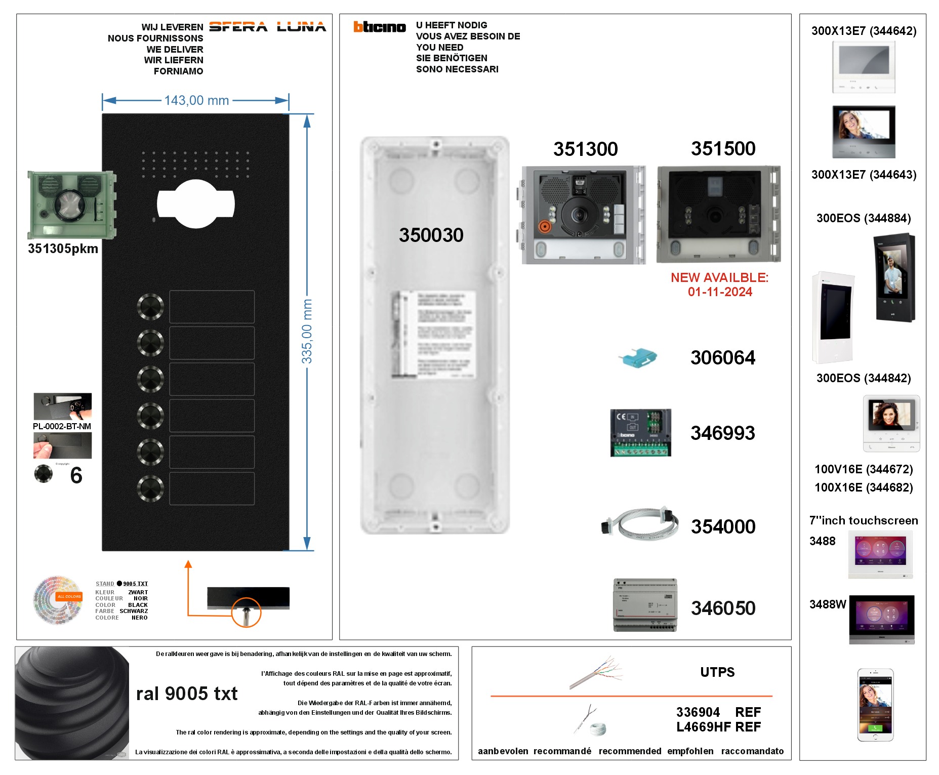 Sfera Luna+6 Boutons Haut de gamme Vidéo-parlophonie Bticino
