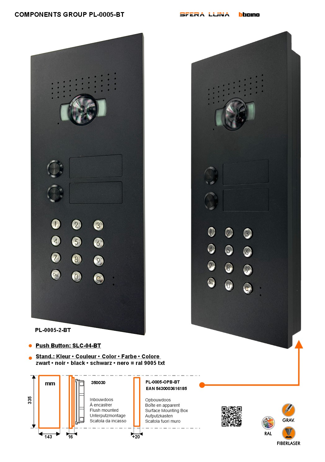 VIDEO-SPRECHANLAGEN SFERA LUNA+2 RUFTASTEN CODELOCK-/TASTATUR HIGH-END BTICINO
