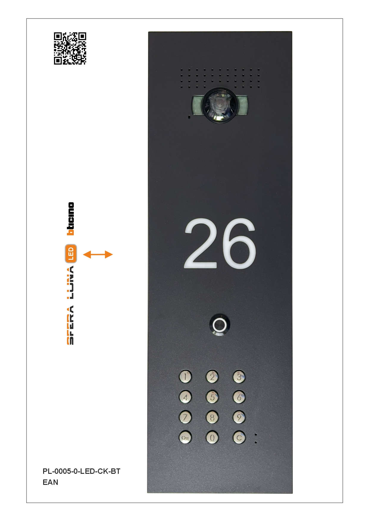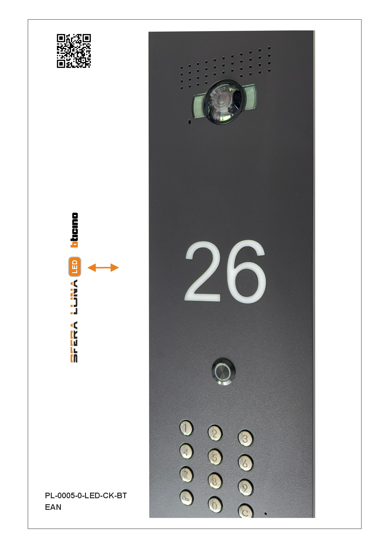 - Videophone front entry panel Sfera Luna+ House sign led lit + Keypad LED illuminated for Biticino