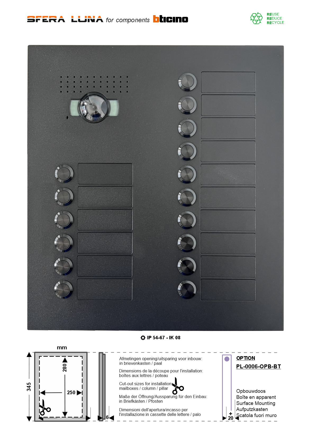 Montaggio su scatole da incasso di Bticino 350030, anche disponibile per montaggio a SUPERFICIE.