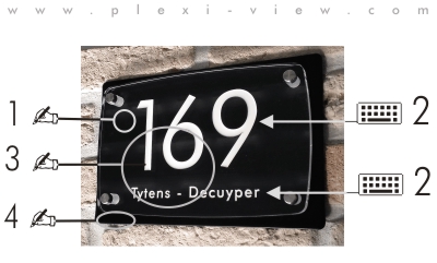 huisnr stand.d tot 2 cijfers,+ 3e cijfer = 15 €/st. - namen stand. tot 20 letters,+21e letters + 1 €/st.