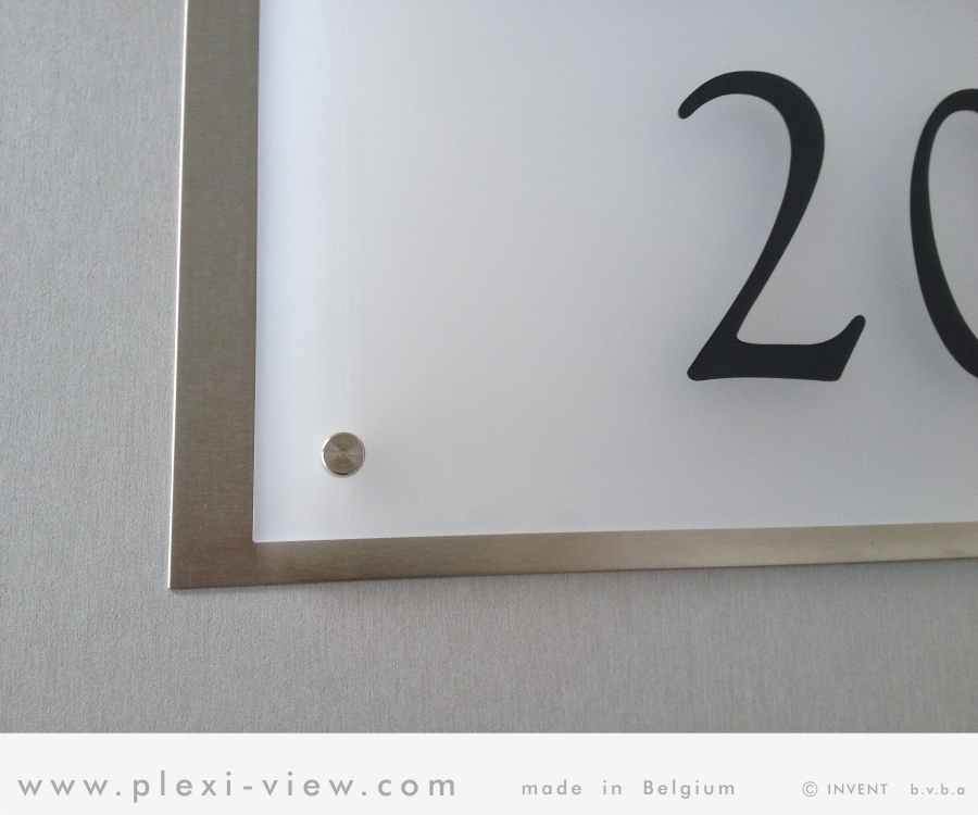 - optie: MONTAGE ZONDER TE BOREN (enkel voor PLEXI MAT): de PLEXI MAT is zelfklevend voorbereid met een kleefkit instant. Perfecte montage voor blauwsteen, brievenbussen, crepie achtergronden, indien men geen gaten wenst te boren of men is geen handige Harry. De naamplaat is NIET AFNEEMBAAR. (kan ook in combinatie met achtergrondplaat) Deze montage is snel en eenvoudig.