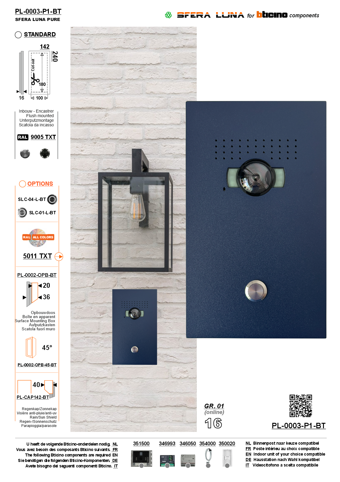 - Or with surface-mounted box: PL-0002-OPB-BT ↗ in RAL colour.