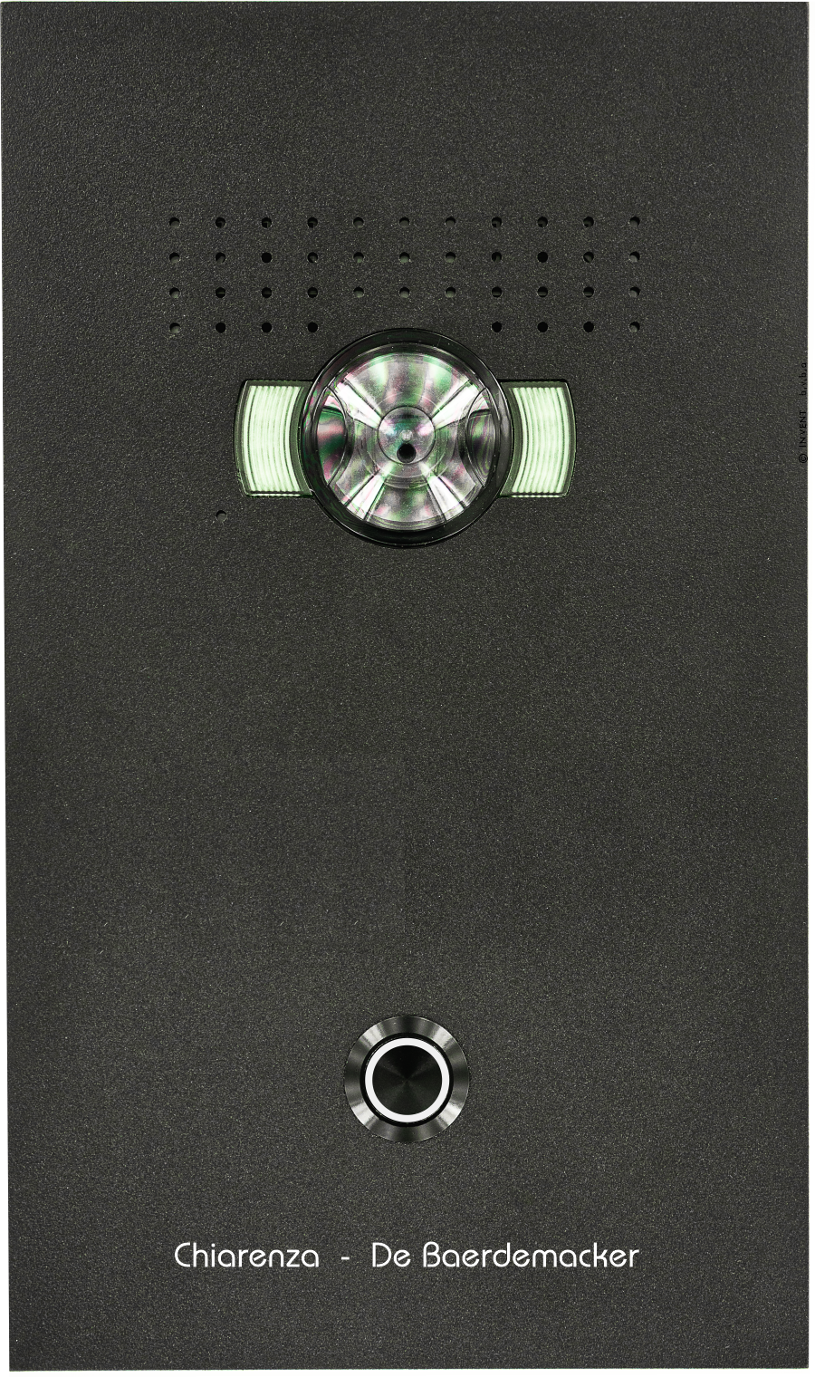 - Le bouton de sonnette, disponible en noir ou en inox (standard), mais aussi disponible avec LED.