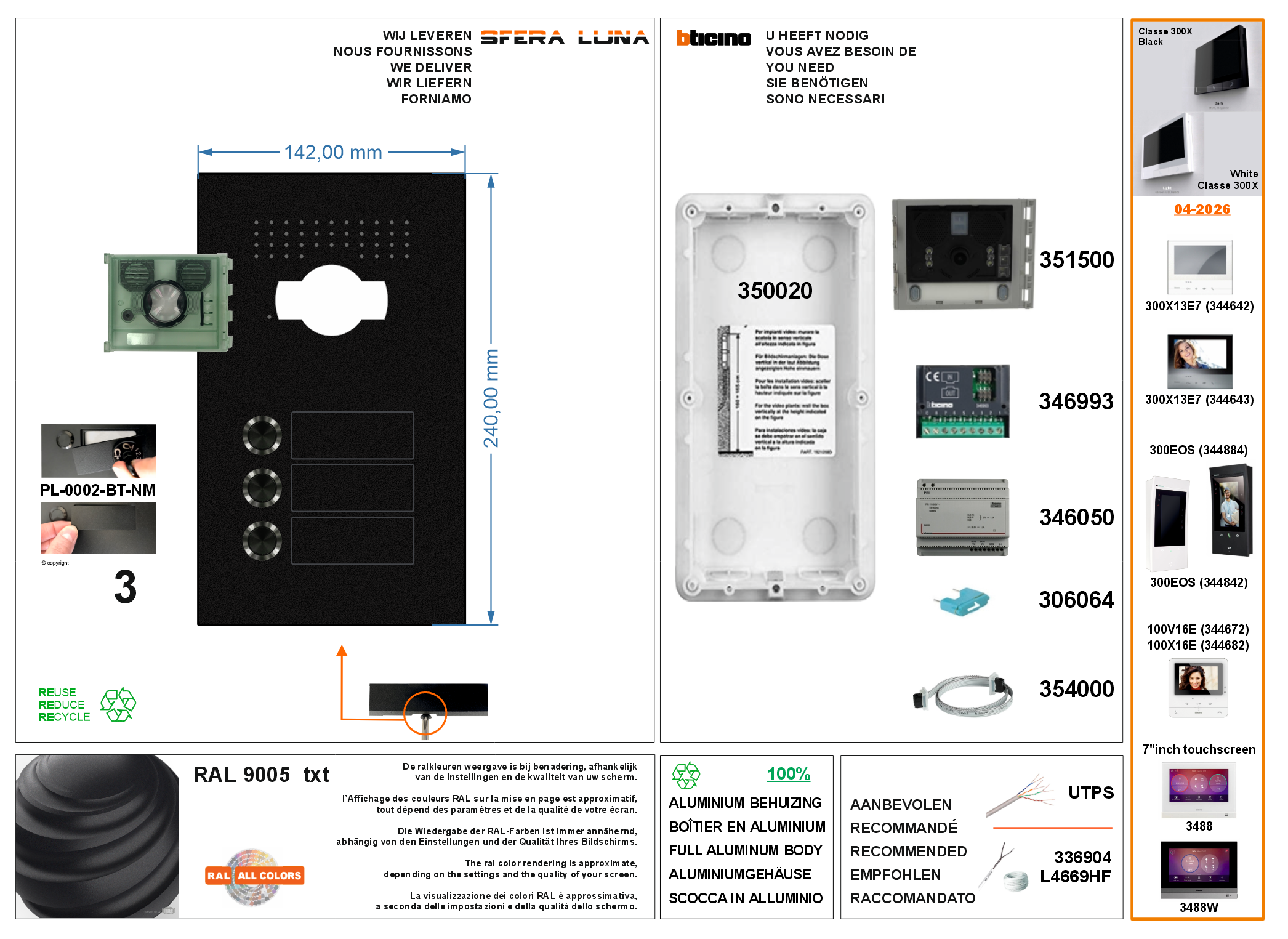 For optimum warranty and support, we recommend purchasing BTicino components through the official distribution network in the country of installation.