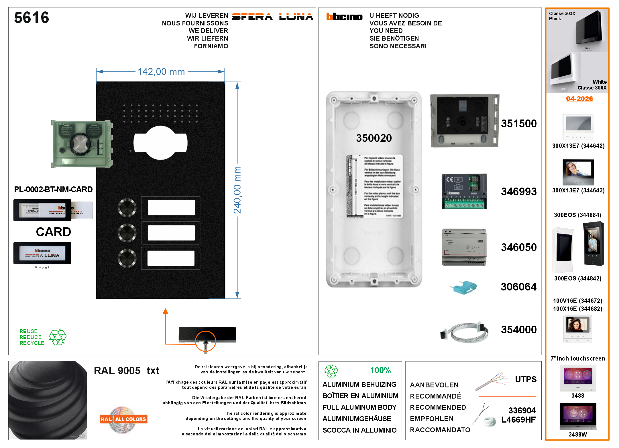 BTicino REF 336904 or UTP-S = Recommended cabling: