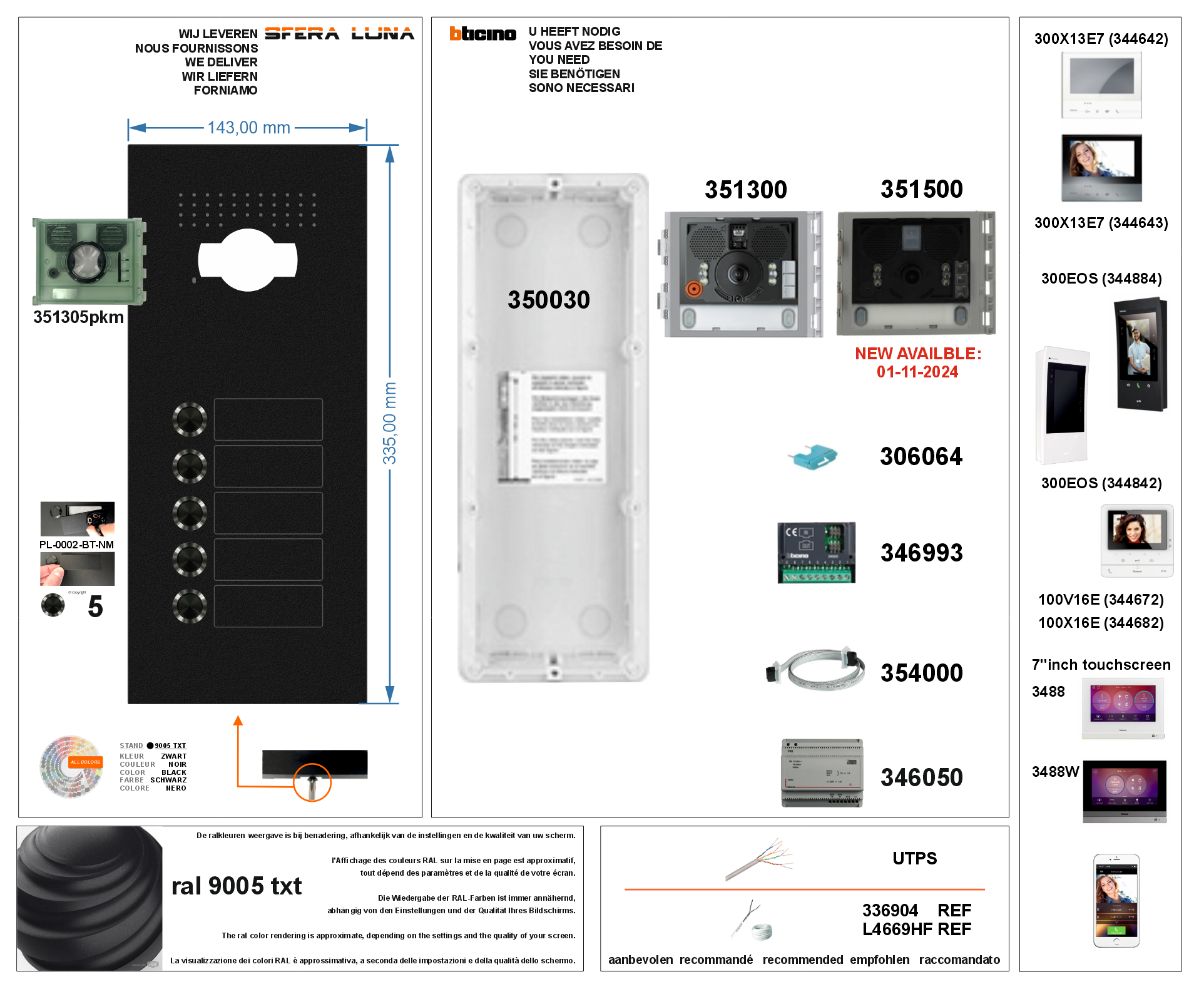 Sfera Luna+5 Boutons Haut de gamme Vidéo-parlophonie Bticino