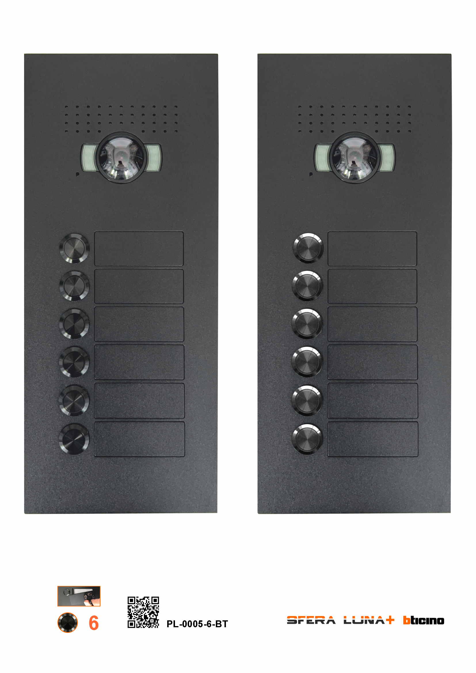 - Platine de rue de vidéo-parlophonie SFERA LUNA+6 avec plaques nominatives amovibles.