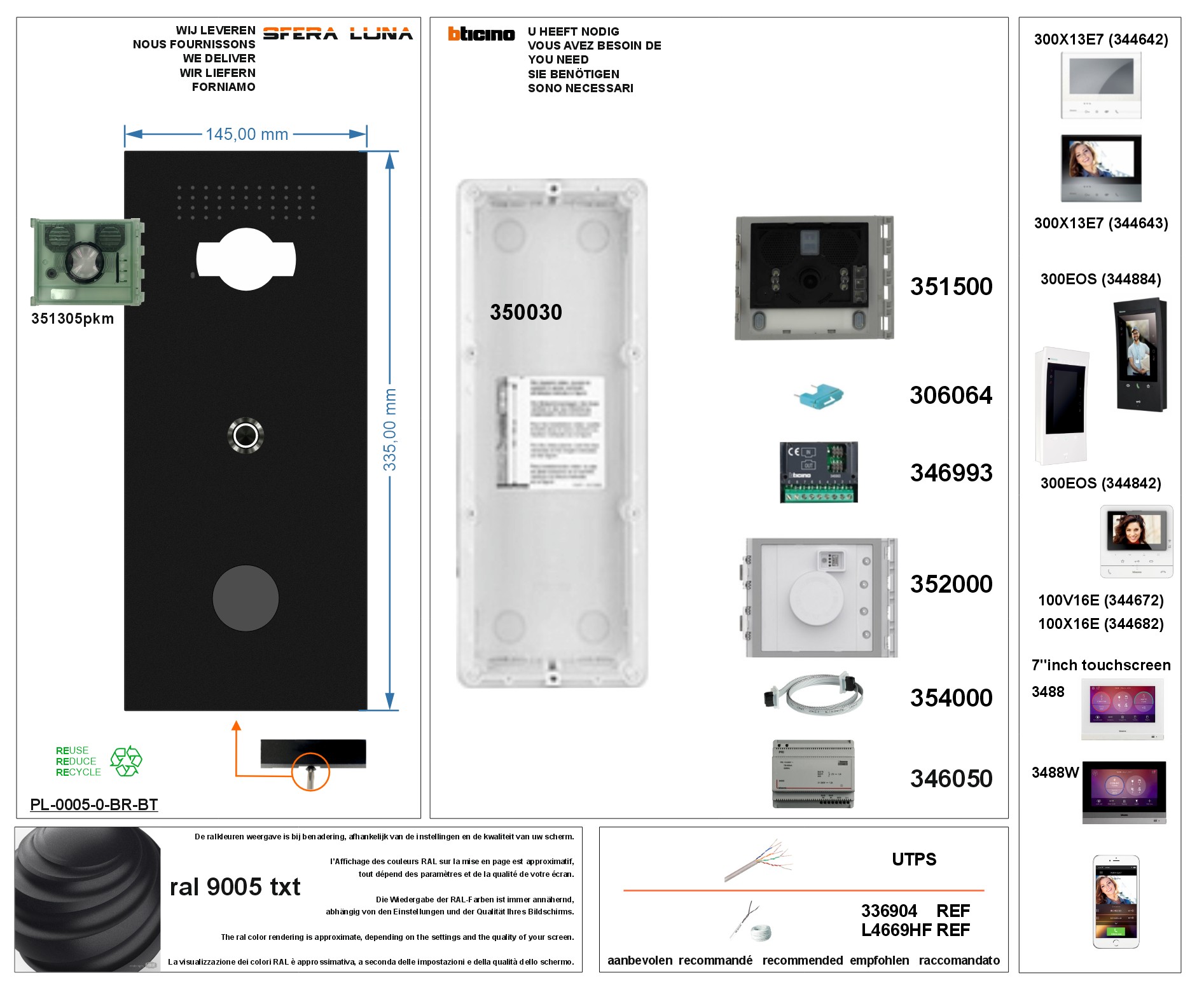SFERA LUNA+ Lecteur de badge/RIFD Vidéo Interphone haut de gamme Bticino