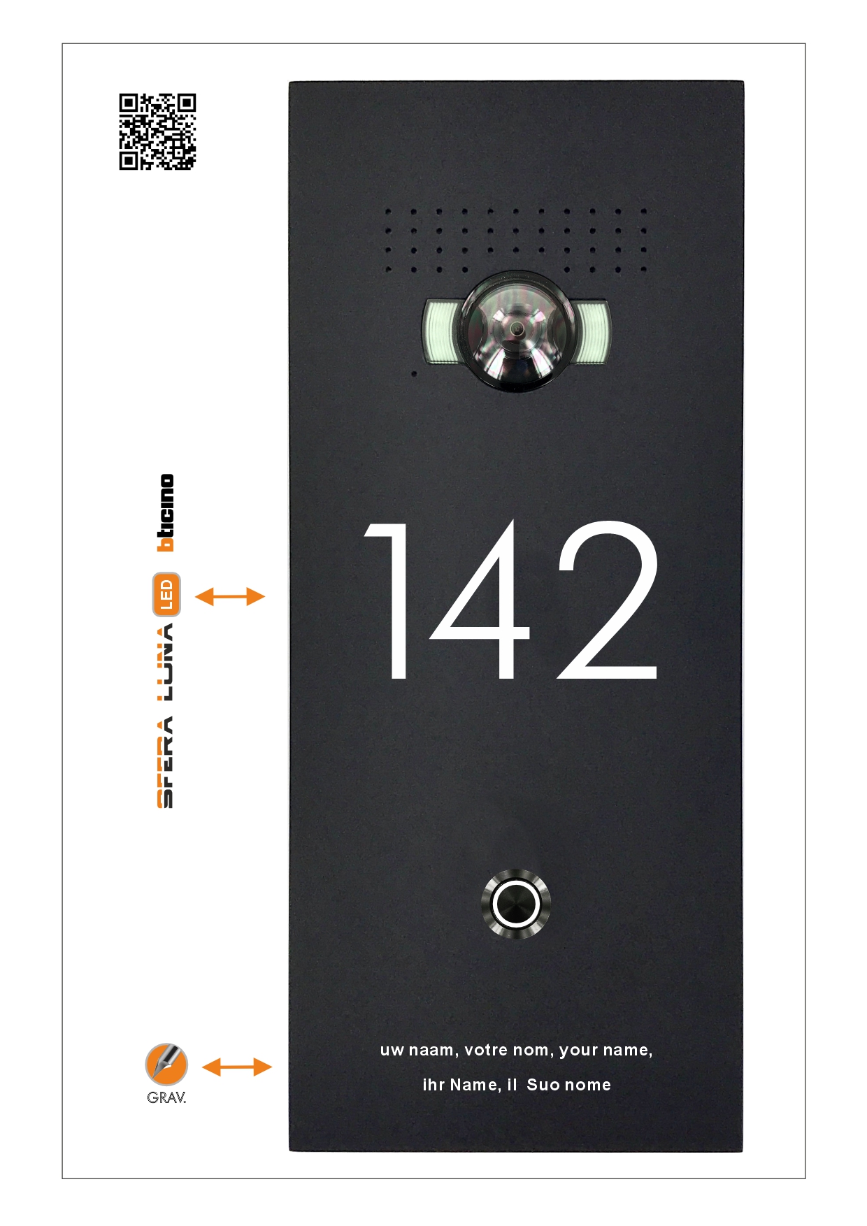 Frontale di pulsantiera videocitofonica SFERA LUNA+LED con numero civico LED