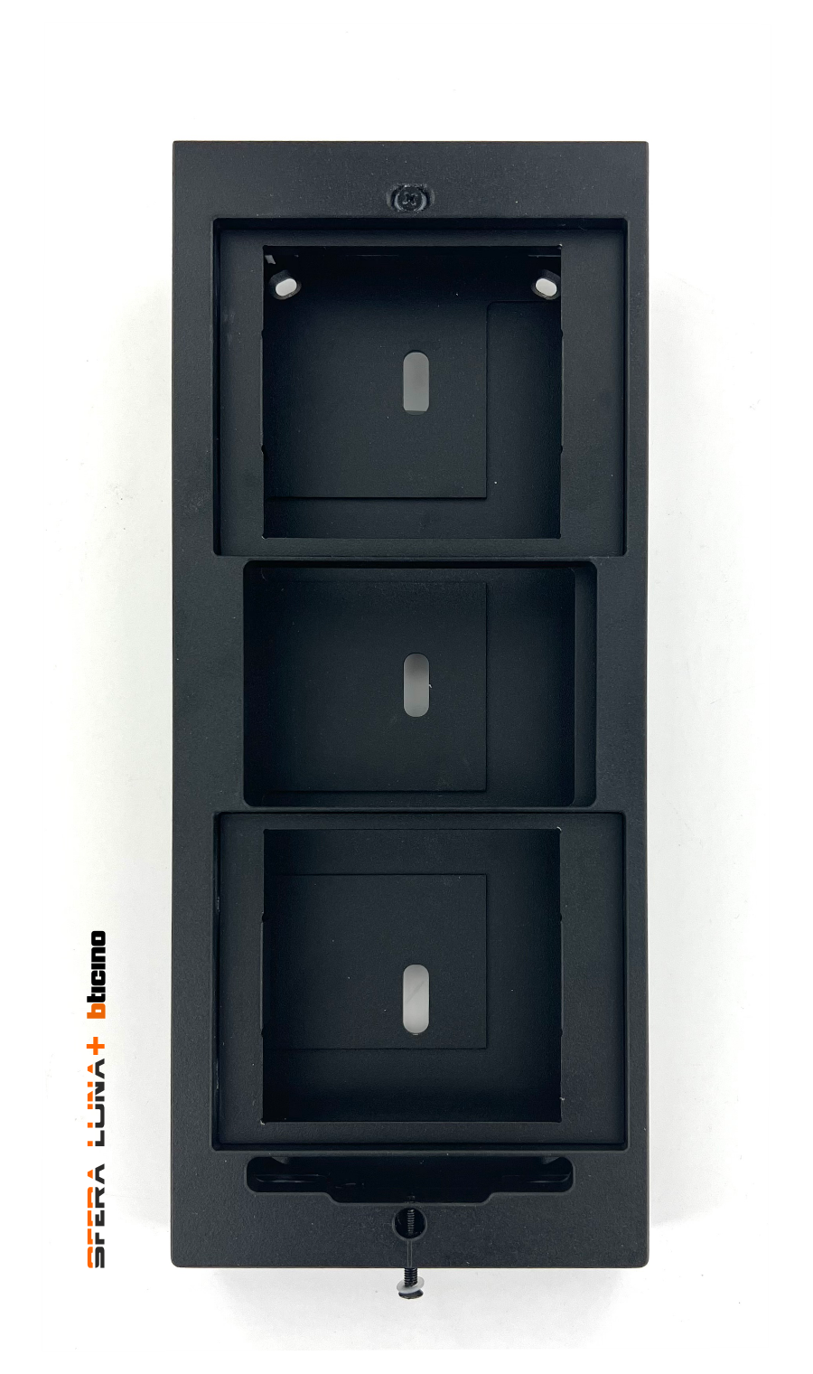 Design surface-mounted aluminium housing, specifically developed for BTicino SFERA LUNA 3-module outdoor stations. The housing combines a sleek appearance with enhanced vandal resistance and is suitable for both residential and professional applications.