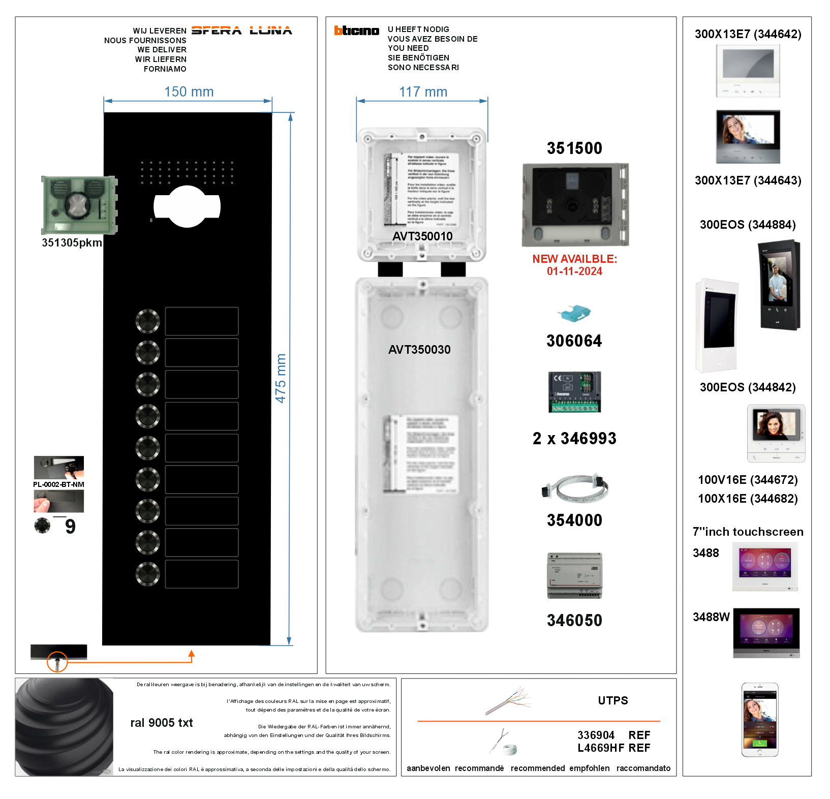 - Compatible with all Bticino indoor units: Class 100X16E (344682) or Class 300 X13E7 wifi-3/4G (344642)