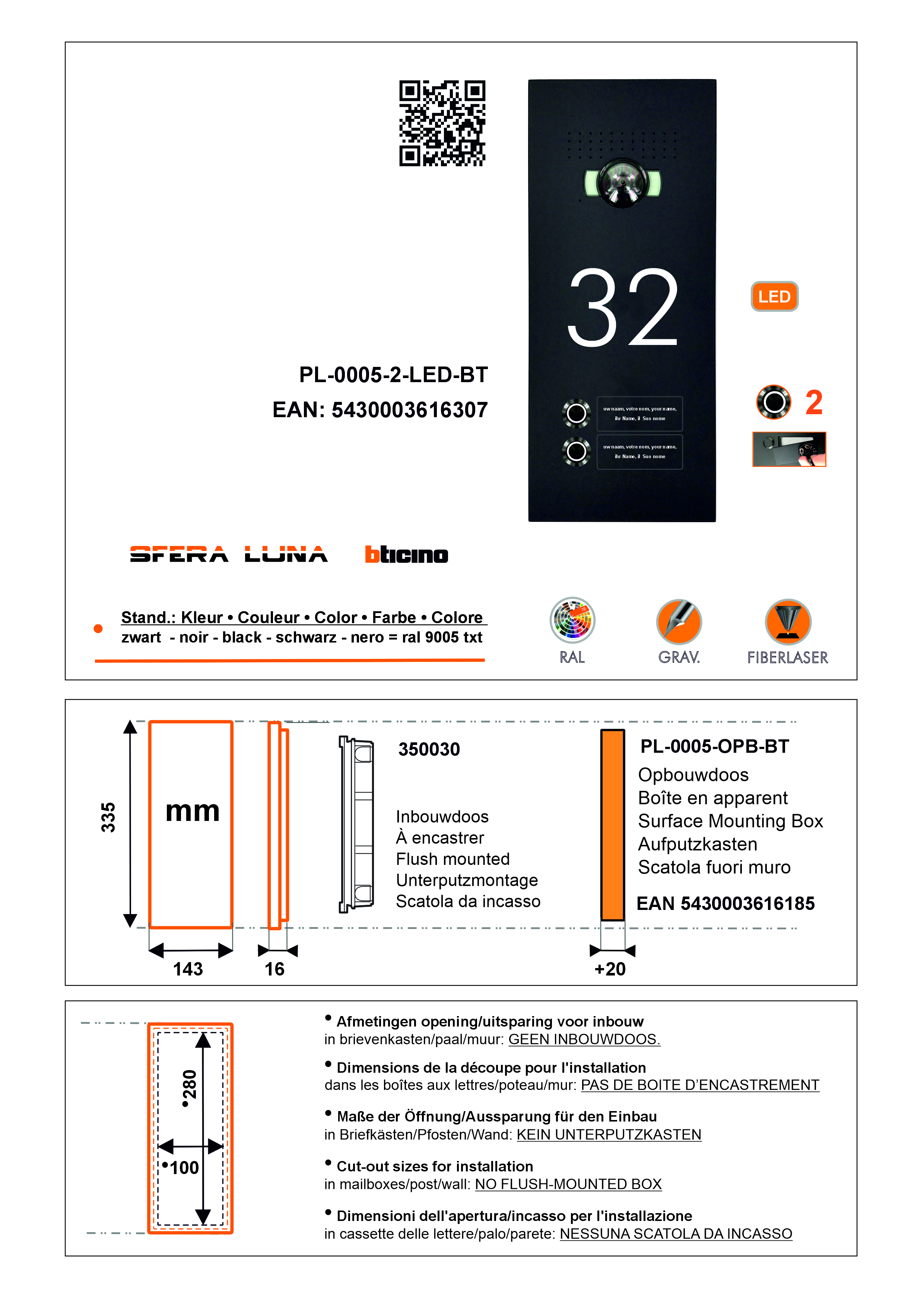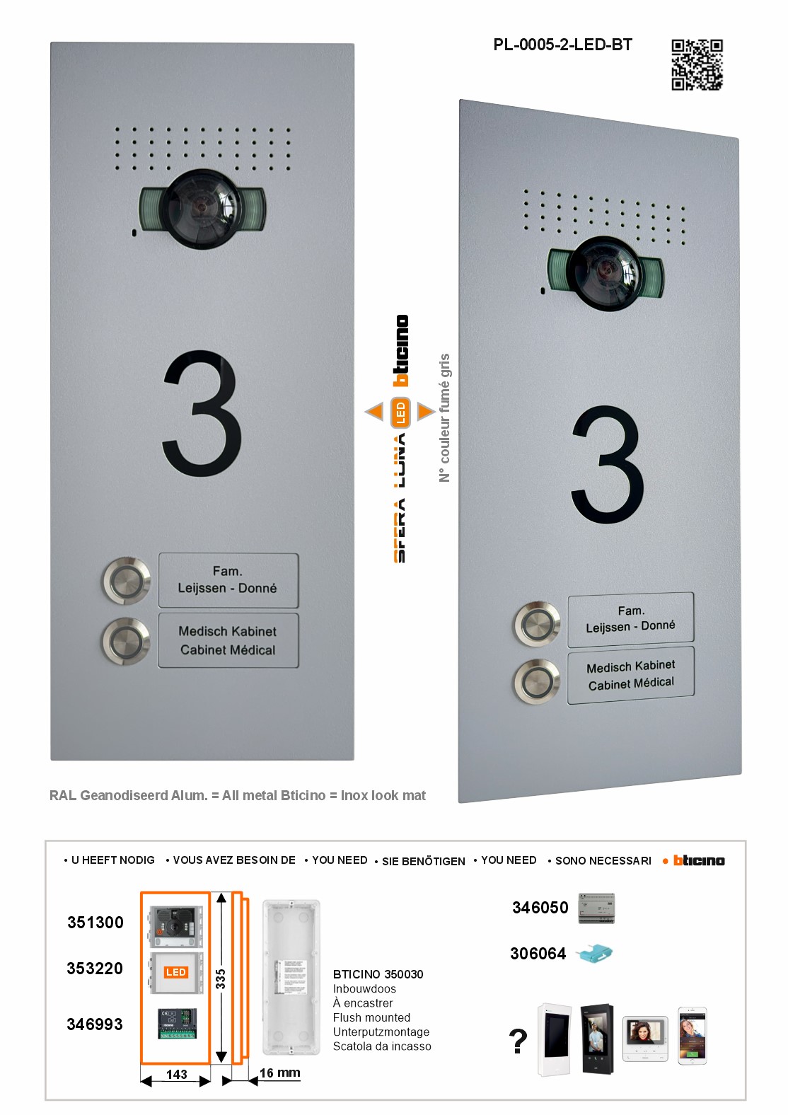 SFERA LUNA 2 LED Numéro De Maison Vidéo-parlophonie BTICINO Module haut de gamme (350030)