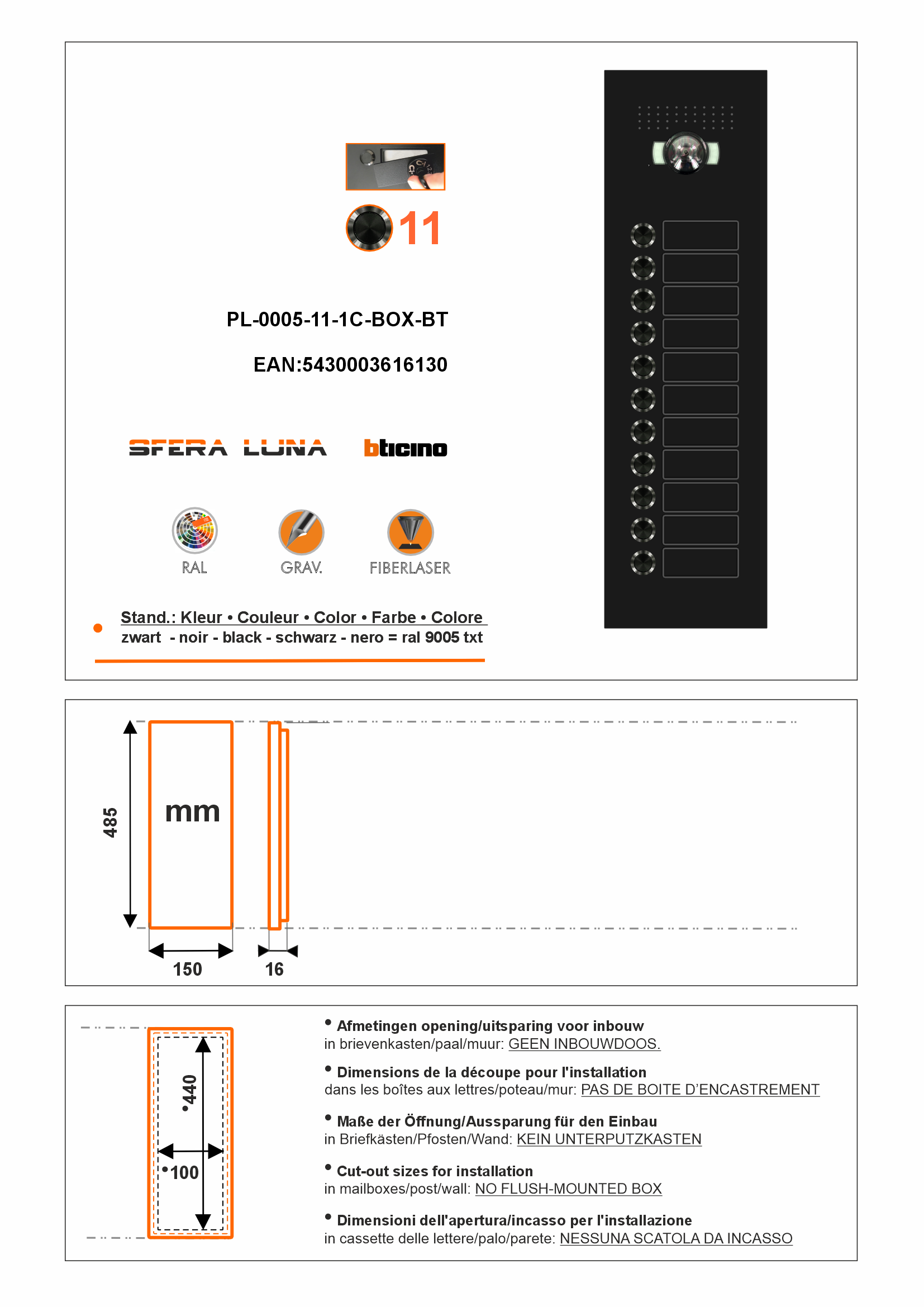 SFERA LUNA+11 Ruftasten für video-sprechanlagen Bticino