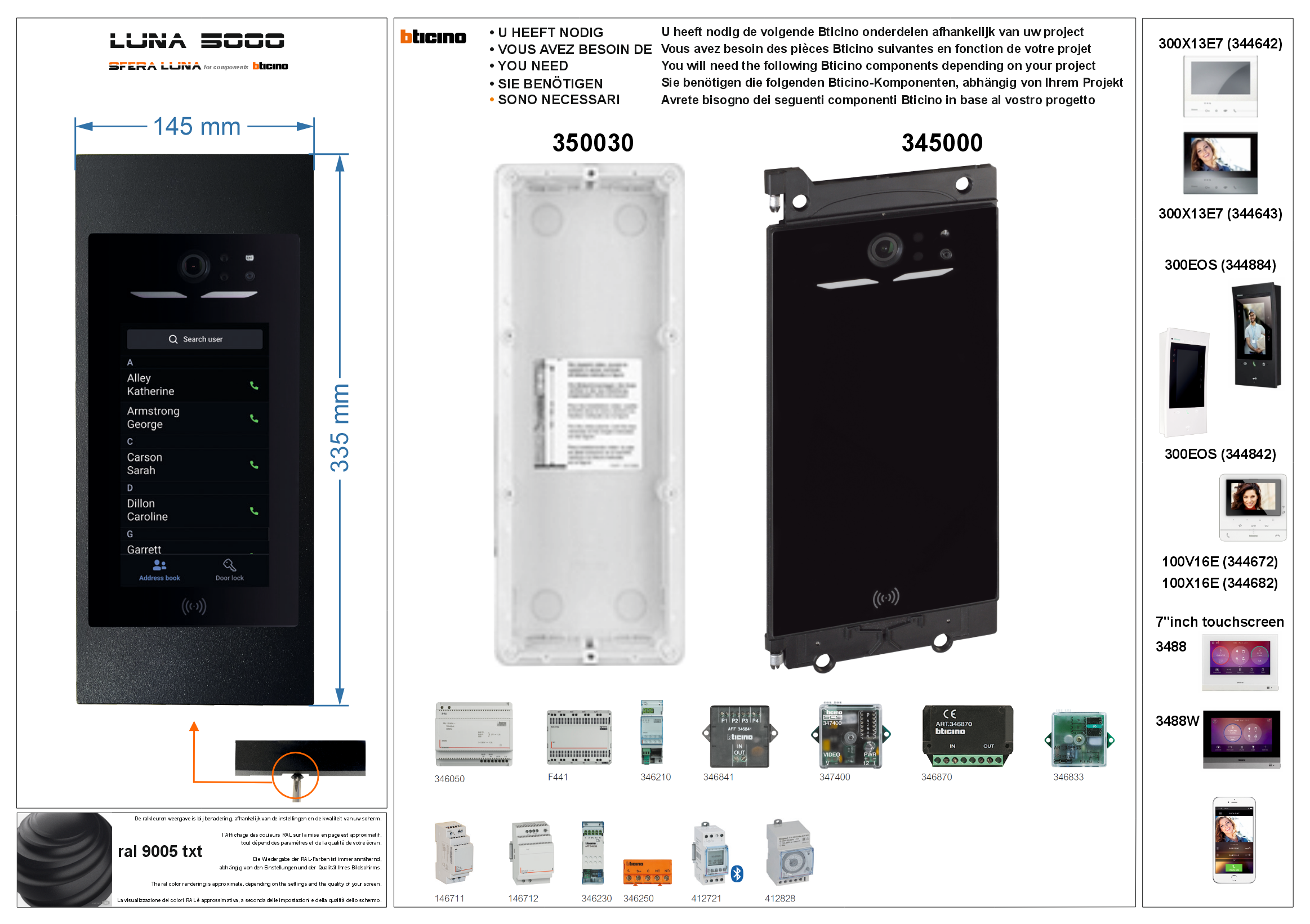 LUNA 5000 Pannello Frontale Premium (per modulo touch Bticino 354000)